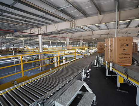 输送机分为链条输送机及滚筒输送机,其功能是实现各类箱、包、托盘等件货的输送,输送单件重量很大的物料,或承受较大的冲击载荷,与其他设备组成复杂的物流输送系统,完成多方面的工艺需要。