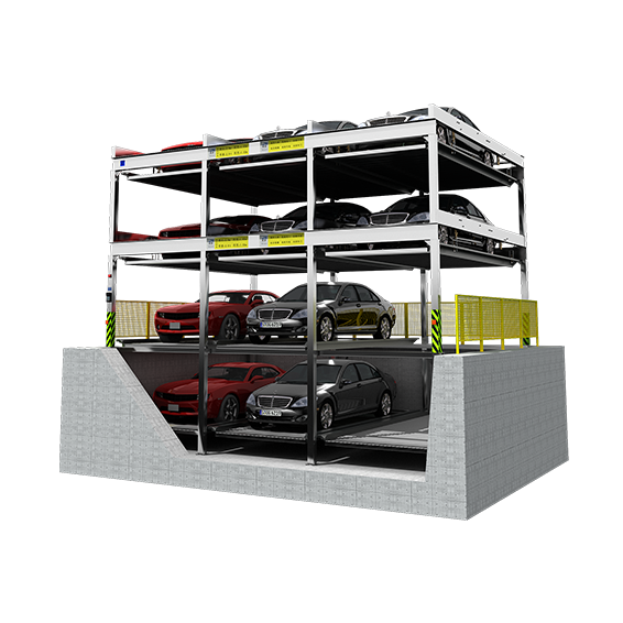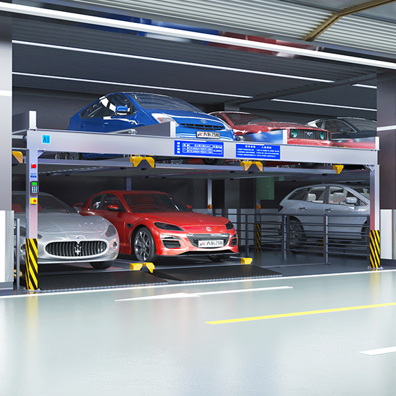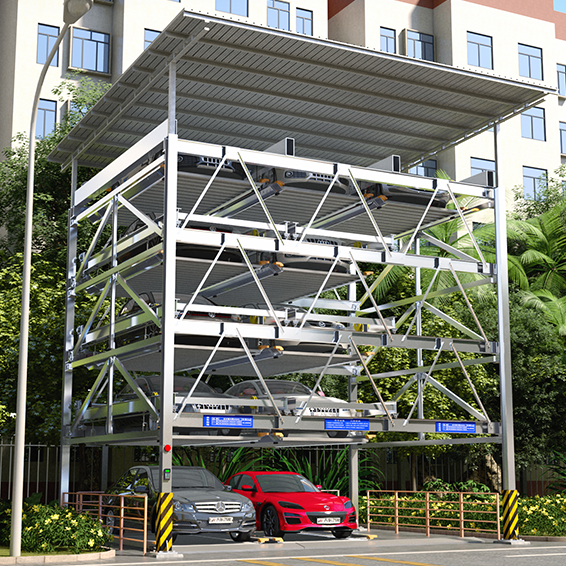 我司升降横移停车设备分为二层升降横移、多层升降横移、地坑式升降横移三种类型。通过电机带动链条或钢丝绳驱动载车板升降和横移实现存取车。除了顶层,一般以下每层空一个车位用于周转。