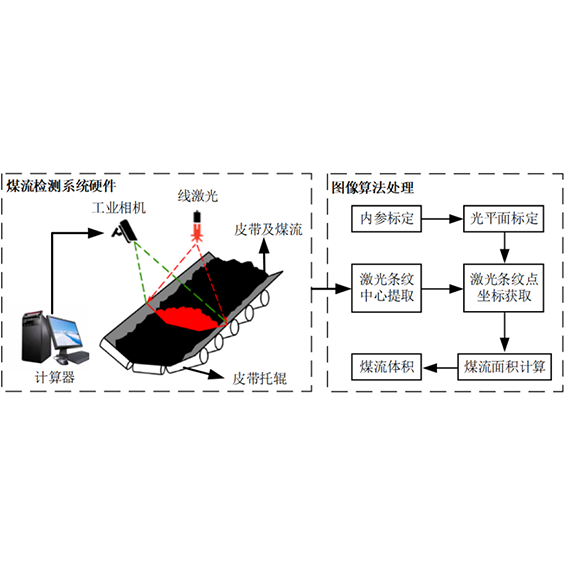 传统带式输送机煤流检测方式主要有电子皮带秤和核子皮带秤。电子皮带秤为接触式测量,受环境影响大,测量稳定性差;核子皮带秤虽实现了非接触式测量,但其采用放射性物质,存在较大的安全隐患问题。随着机器视觉技术的快速发展,其非接触测量、高度自动化、高效率、高精度和适应较差环境等优点,广泛应用于我国工业自动化中。将此技术运用到煤流检测中,可以快速获得煤料信息,大大提高煤炭运输过程的安全性和可靠性,对于“智慧矿山”的构建具有重要意义。