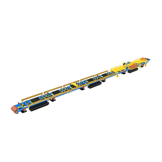 履带式自移机尾由本公司自主研发,集机尾快移、物料输送、托辊架自动延伸等功能于一体的高技术产品,与转载机、掘锚一体机配合使用,是实现煤矿智能快速掘进的核心装备之一。该产品采用单/多履带底盘和电液控制技术,适用于不同的底板条件,移动速度快,控制精度高,实现了掘进过程中带式输送机不停机连续运输。
