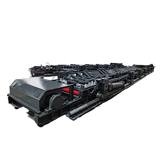 迈步式自移机尾装置适用于煤矿井下掘进巷道和顺槽巷道,用于综掘机二运皮带机与后运带式输送机尾的快速推移和搭接,或工作面桥式转载机和顺槽带式输送机的联接,主要由导轨、滑枕推移油缸、机尾座、自移动小车、外轨道液压控制系统等部分组成。该装置可与任何型号带式输送机配套使用,用于掘进工作面施工时,机架可布置综合防尘装置,随机架一起移动或防尘装置自行移动。液压控制系统以工作面高压乳化液为工作动力。本装置自带泵站。该装置用多联阀,完成所需各种动作。每个支撑液压缸都装有液控单向阀,确保机架任一状态不会因自重自行滑落。滑枕可随时调节机架向左或右移动。主要技术特点